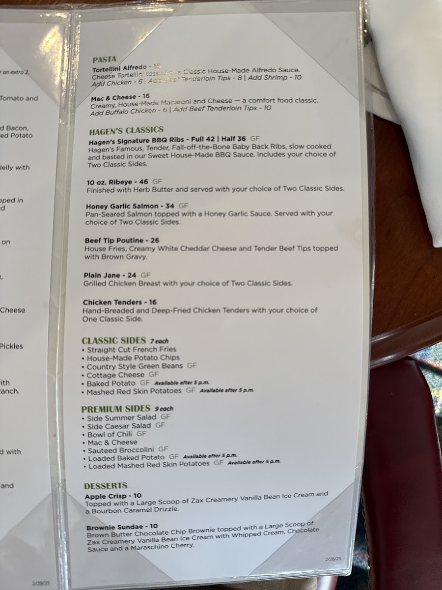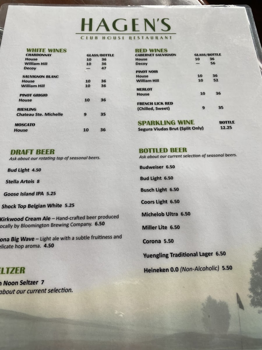 “ While visiting French Lick, we decided to try a restaurant outside of town and the usual fair. We discovered Hagen's Club House restaurant at the golf course. Great choice! The food was excellent with a sports bar, country club atmosphere. Parking is easy and plentiful. The facility is spacious and well maintained. I ordered the Carne asada Quesadilla was delicious as was the fresh and crisp fruit side dish. Despite the higher priced food we were very pleased and enjoyed our time there. You will too. ”